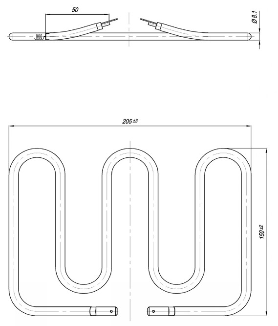 Elektromos csőfűtőbetét grillezőhöz Aisi 304 Ø8.1 mm ~230 V 1000 W