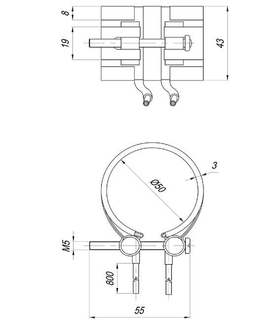 Elektromos fűtőpalást Ø50x43 ~230V 250W