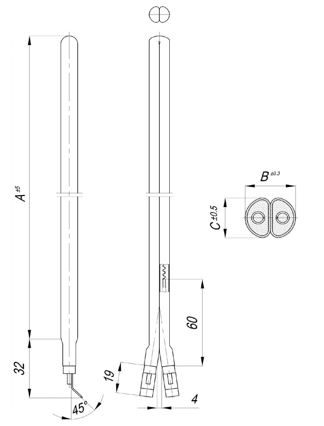 Elektromos csőfűtőbetét bojlerhez "Y" alakú Gorenje, Leov Aisi 304 Ø8.1 mm ~230 V 1000 W L=400 mm