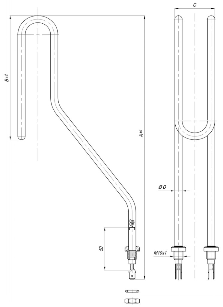 Elektromos csőfűtőbetét bojlerhez Cu/Ni Ø8.1 mm ~230 V 2000 W M10