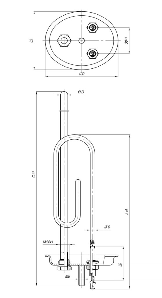 Elektromos csőfűtőbetét bojlerhez Komplett 80L réz/nikkel Ø6.5 mm ~230 V 3000 W réz/nikkel Ø10x290 mm, cink karima