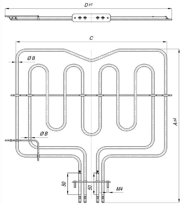 Elektromos csőfűtőbetét BEKO sütőhöz Aisi 304 Ø6.5 mm ~230 V/ 2000+1150 W