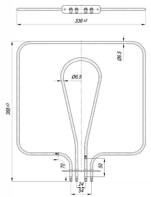 Elektromos csőfűtőbetét tűzhelyhez CANDY Dupla Aisi 304 Ø6.5 mm ~230 V/98 V/ 1000+450 W