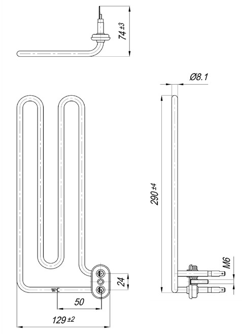 Elektromos csőfűtőbetét mosogatógéphez NEO WEG MIDEA GORENJE Aisi 316L Ø8.1mm ~ 230V 1800W "M"