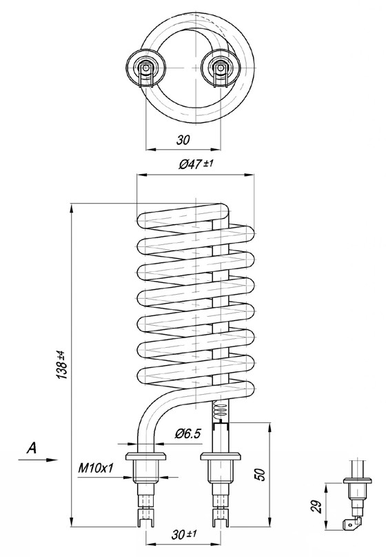 Elektromos csőfűtőbetét bojlerhez réz Ø6.5 mm, 230 V 2000 W