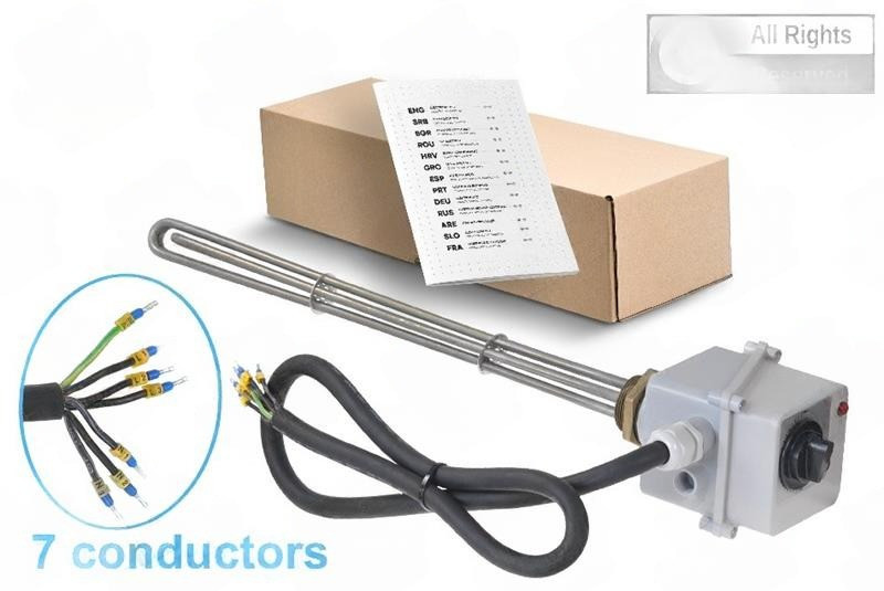 Elektromos csőfűtőbetét bojlerhez napelem panelhez termoszabályzással R2 1/2" Aisi 316L Ø8.1 mm 3~230 V 6000 W L=505 mm Ø10x350 mm