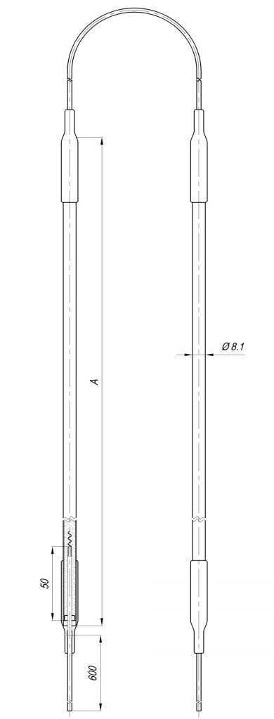 Elektromos csőfűtőbetét hűtőberendezéshez Aisi Ø8.1mm ~ 230V/ 400+400W L=2x800mm