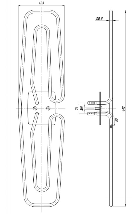 Elektromos csőfűtőelem fűtőberendezéshez MAGNOHROM M5mm Aisi 304 Ø6.5mm ~ 230V 2000W