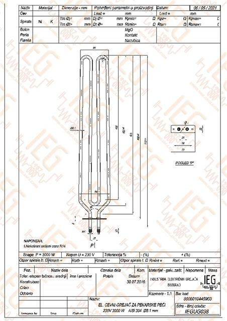 Elektromos csőfűtőbetét sütőkemence csőfűtőbetét Aisi 304 Ø8.1mm ~ 230V 3000W