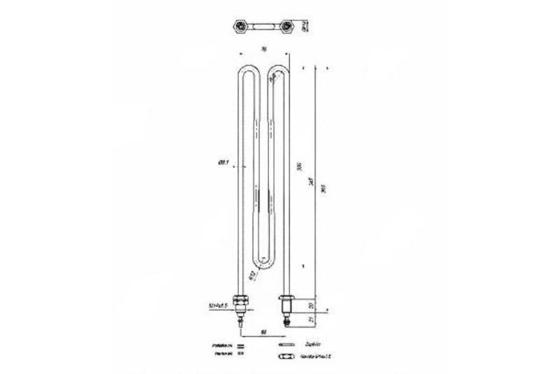 Elektromos csőfűtőbetét pékkemencéhez M fogazott Ms M14 Aisi 304 Ø8.1mm ~ 230V 2800W