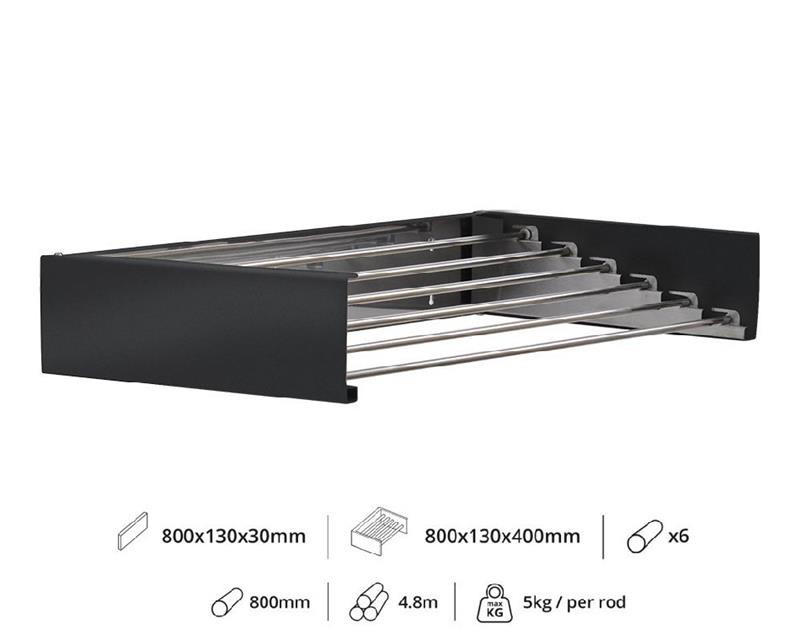 Fali szárító INOX 800mm hosszú műanyag bevonatú antracit szín