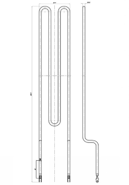 Elektromos csőfűtőbetét IGO grillezőhöz Aisi 304 Ø6.5 mm ~230 V 1500 W csőfűtőbetét grillhez