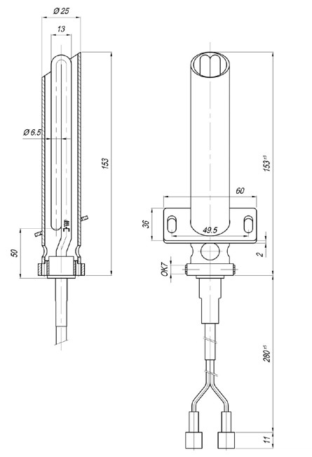Pellet gyújtó elektromos csőfűtőbetét MBS KOMPLET tartóval Aisi 321 Ø6.5mm ~ 230V 350W