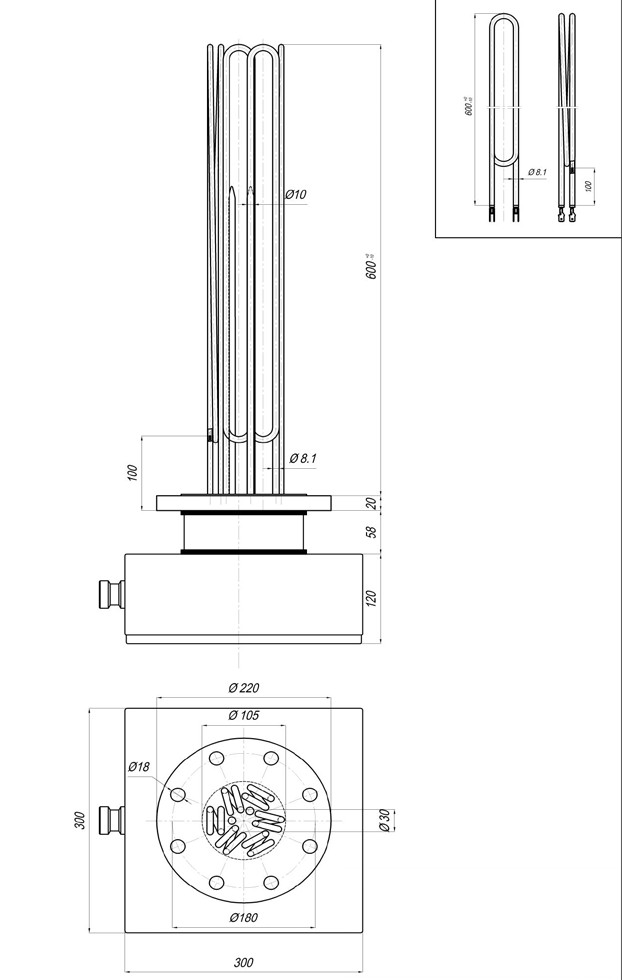 Aisi duplikátor elektromos csőfűtőbetét Ø8.1mm ~400V 7500W L=600mm - FELSZERELÉS
