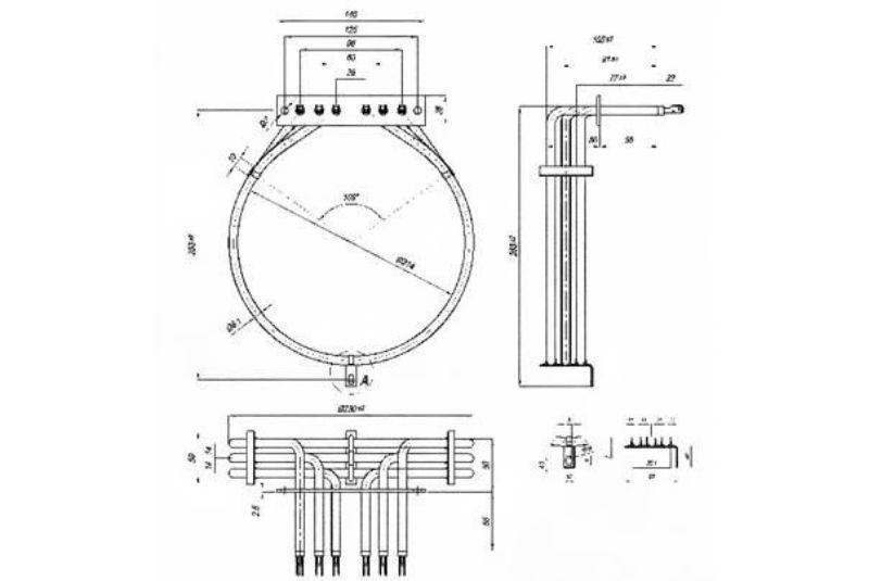 Elektromos csőfűtőbetét pékkemencéhez KÖR alakú fi 230mm Aisi 304 Ø8.1mm ~ 3x230V 4500W