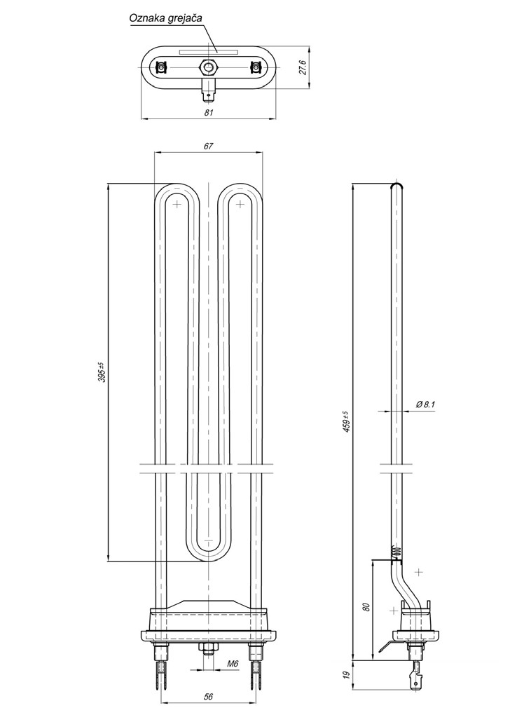 Elektromos csőfűtőbetét mosógéphez PRIMAT Aisi 316L Ø8.1mm ~ 230V 5000W
